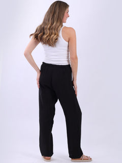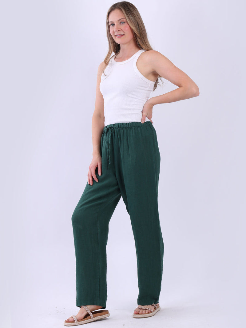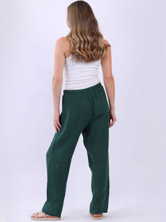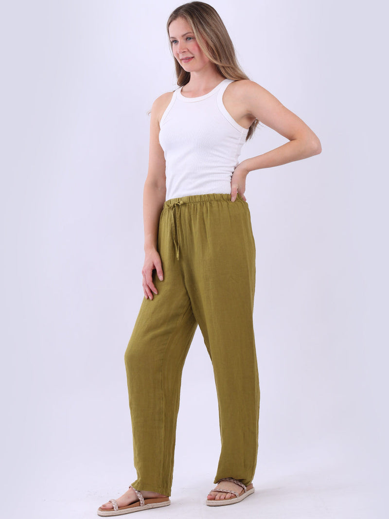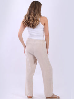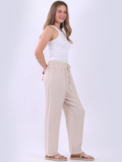 Embrace the understated elegance of these solid linen trousers by Fashion Boutique. These are chic and classy with their plain hue and wide-leg relaxed fit, while an elastic waistband with an adjustable drawstring adds a modern twist. Classy ladies, pair them with a matching hi-low hem dress for a scene-stealing appearance at any upcoming event.