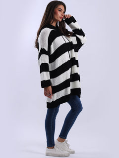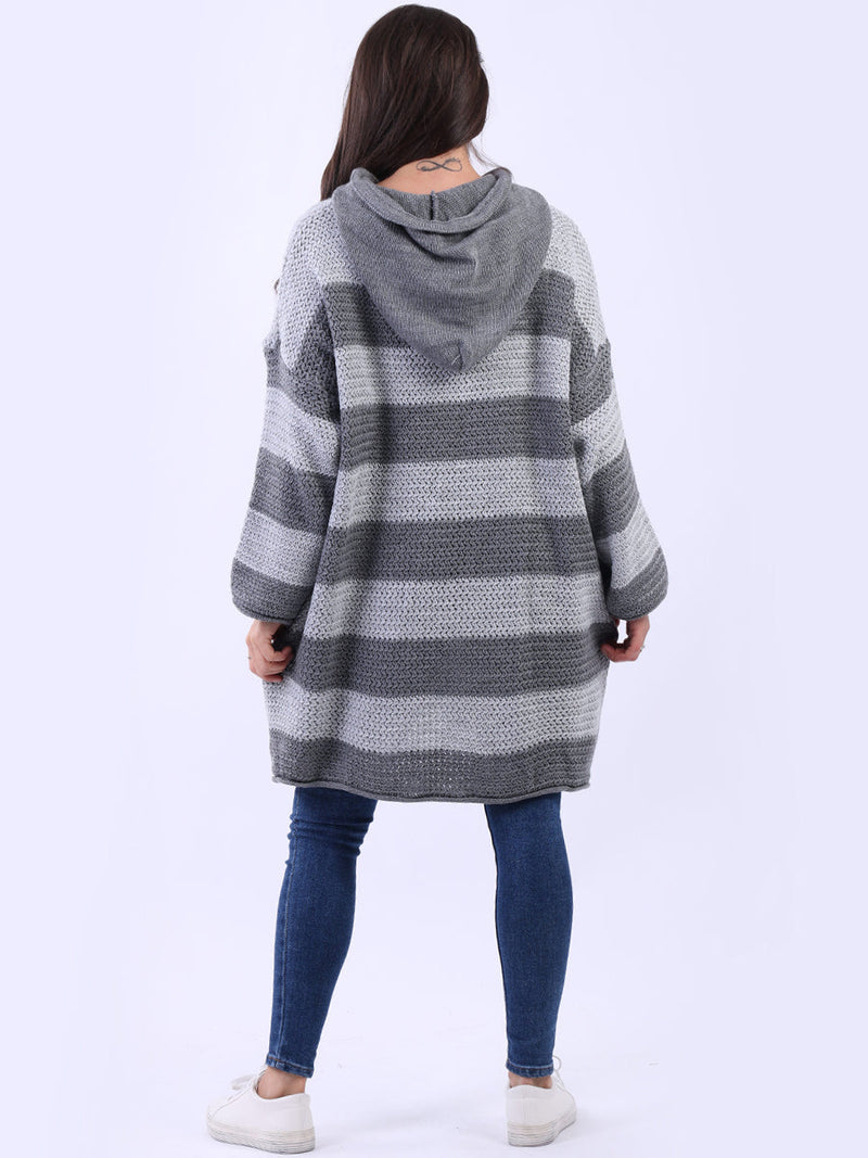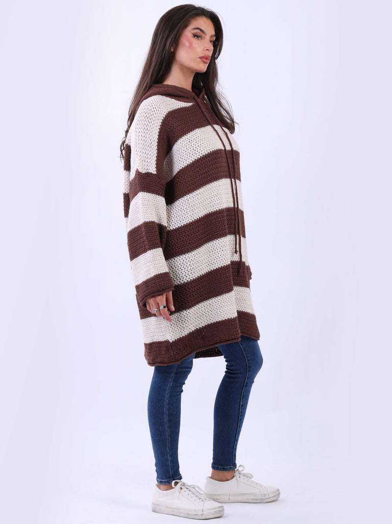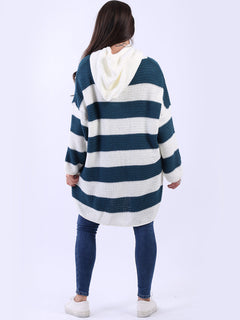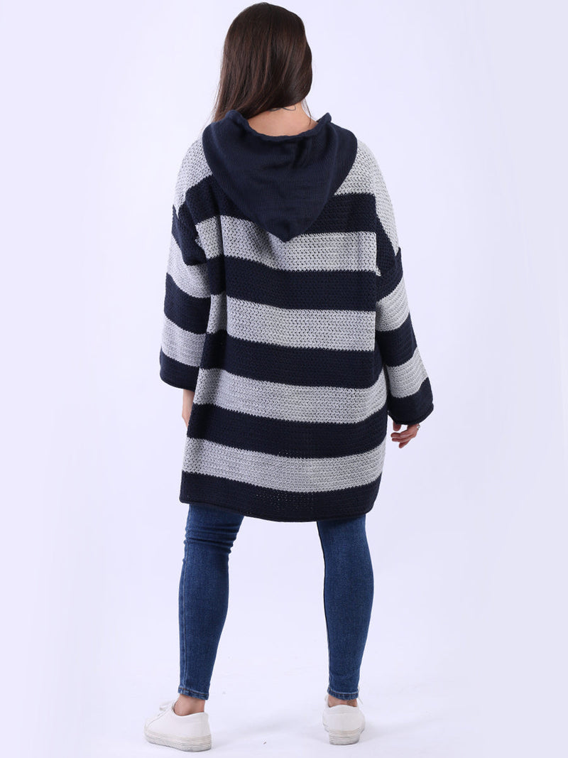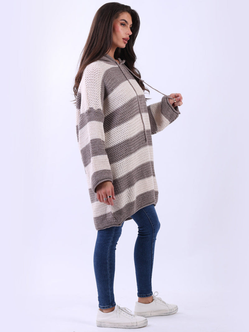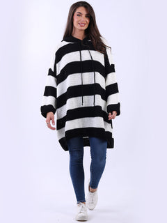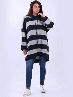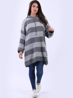Stripy Plus Size Batwing Chunky Knit Hooded Jumper