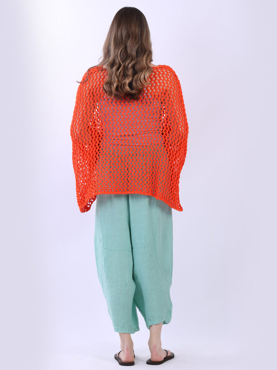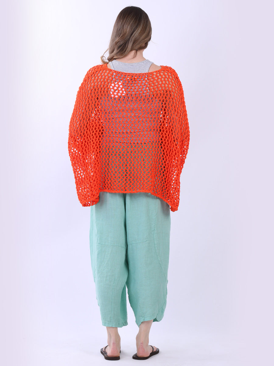 Made in Italy with finest cotton batwing cover up from fashion boutique has rich features like round neck, star knit on the frontside, crochet mesh and cut in a lose shape allows the women wearers all the freedom they want to move.