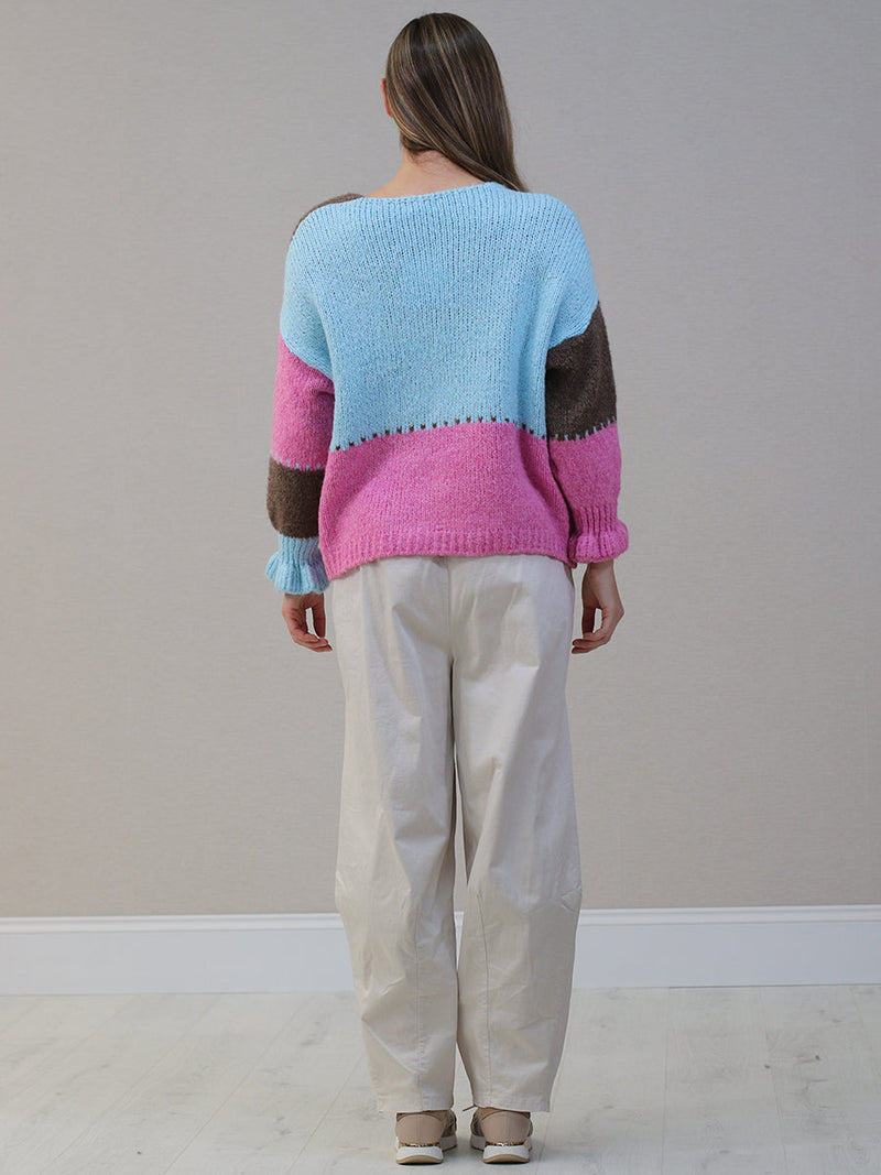 Fashion Clothing Store new knitwear edit includes this eye-catching cardigan designed to deliver both warmth and style. The multicolor block pattern brings a pop of personality, while its front button closure, drop shoulders, and sweeping bell sleeves create an effortlessly chic shape. Completed with a neatly ribbed hem, this Italian-made cardigan layers beautifully over winter outfits, making it an instant seasonal staple.