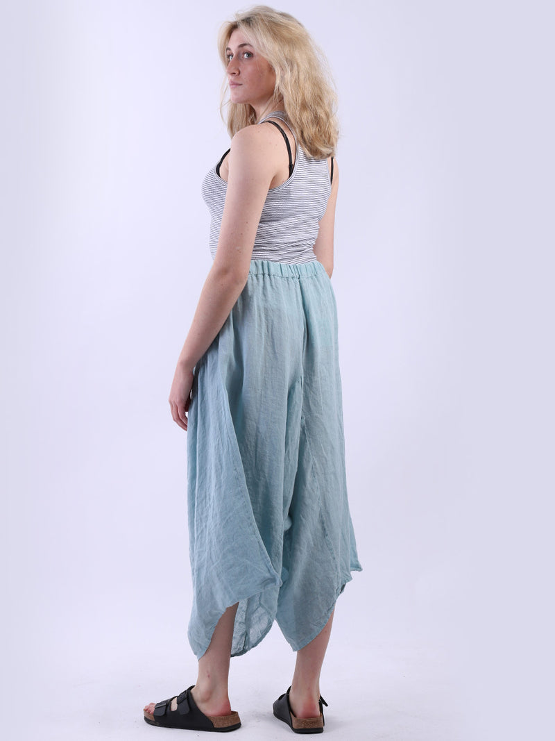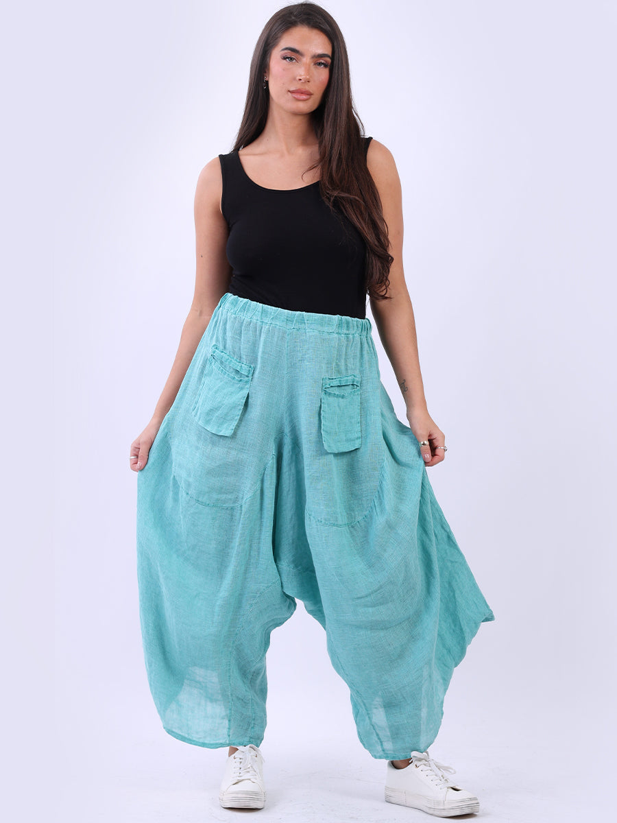 Be versatile by having this made in Italy high quality wide leg harem palazzo pants from the latest summer collection of online fashion boutique. In style, vintage wash pants with functional front pockets, soft elasticated waist, and wide leg hem will make it a perfect fit for everyone.