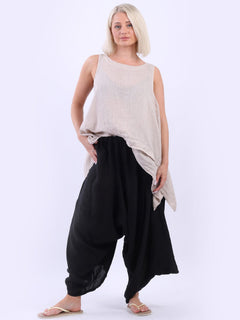 Made in Italy with exquisite tailoring that is iconic and chic these light weight trousers are straight from the fantasy book. Naturally breathable and cozy the harem trousers has elastic waist that is easy to pull on, wide leg finish and vintage wash style. Mix and match with tie and dye top from Women Clothing Store.