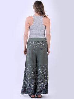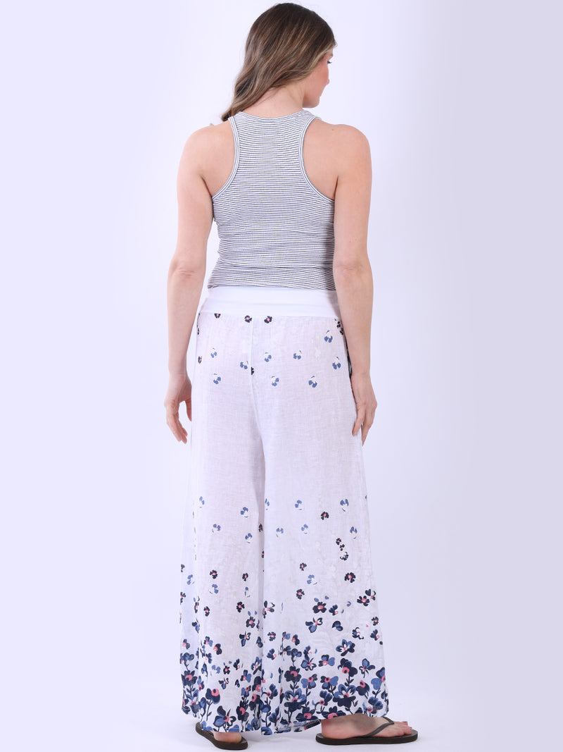 Simple, light, and incredibly charming! Comfort with a fashionable twist rules these linen palazzo trousers. The wide-leg cut moves like a dream, and that floral hem? A total showstopper! For carefree days, dress them with an elegant top or go casual with a laid-back tee; these are must-haves.