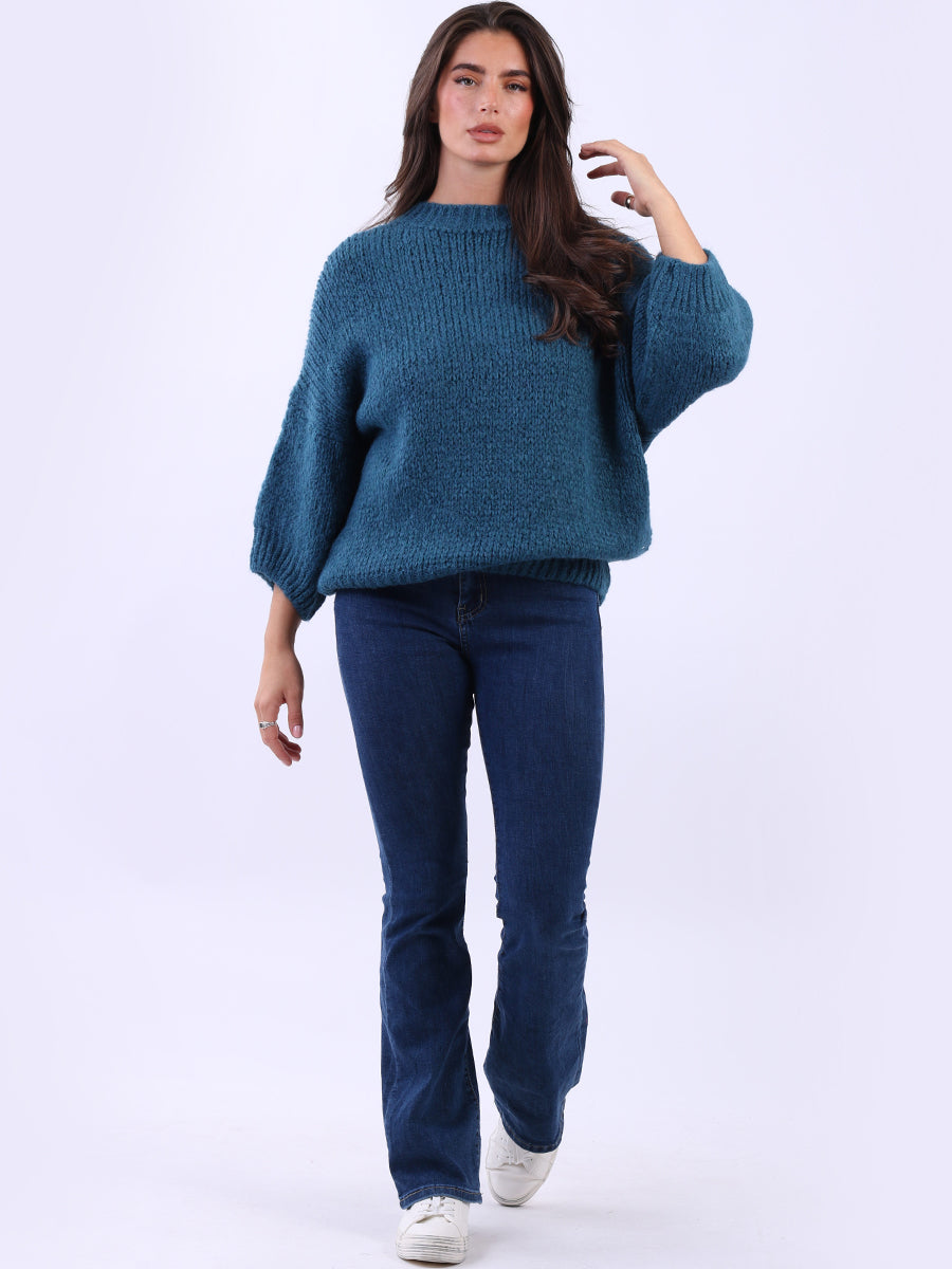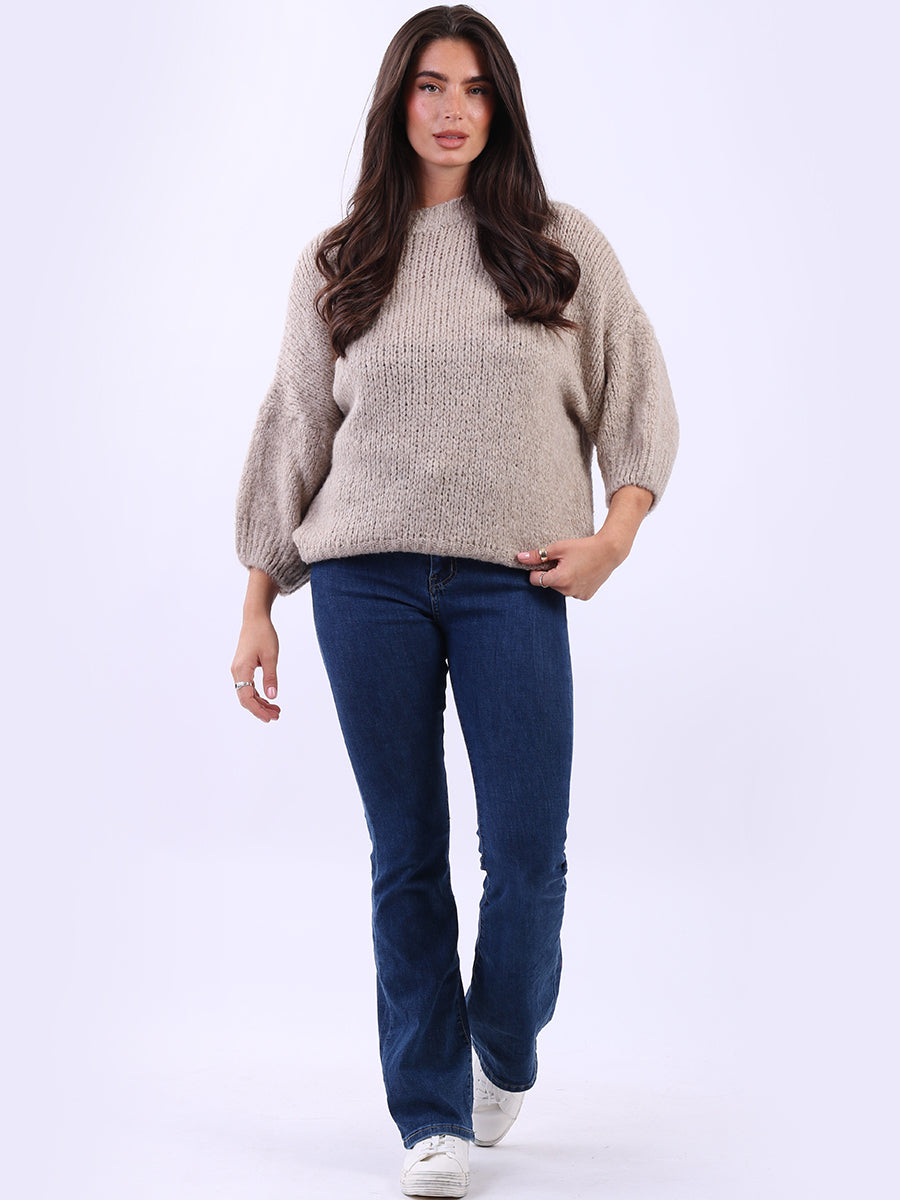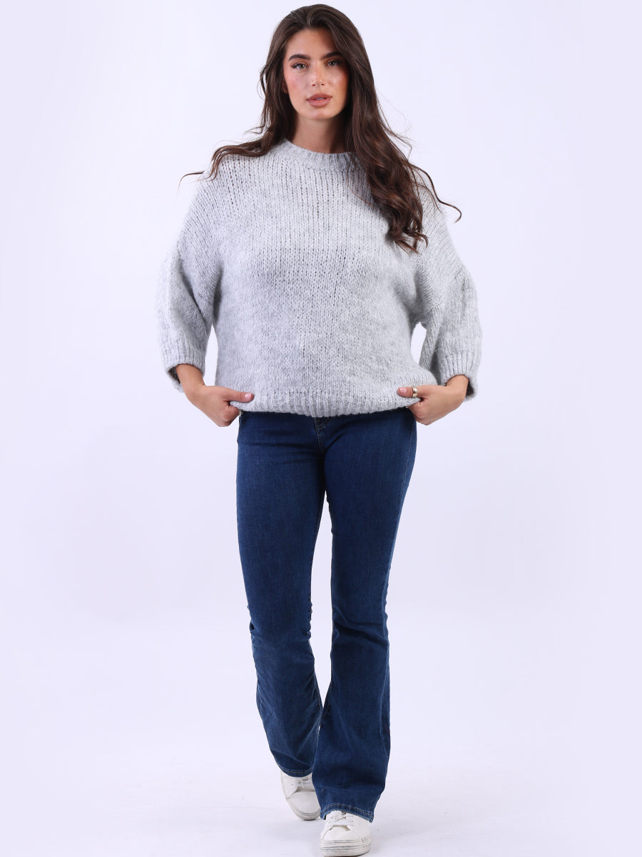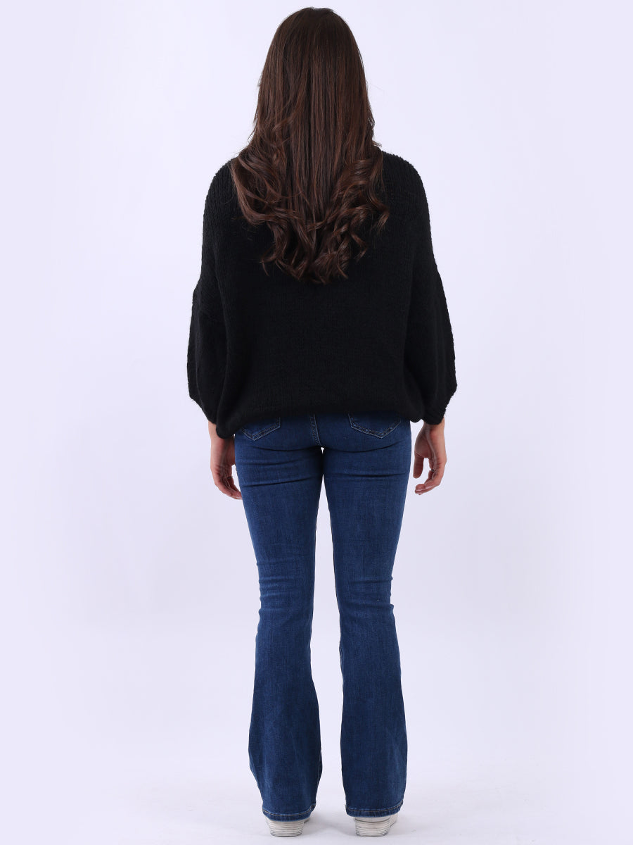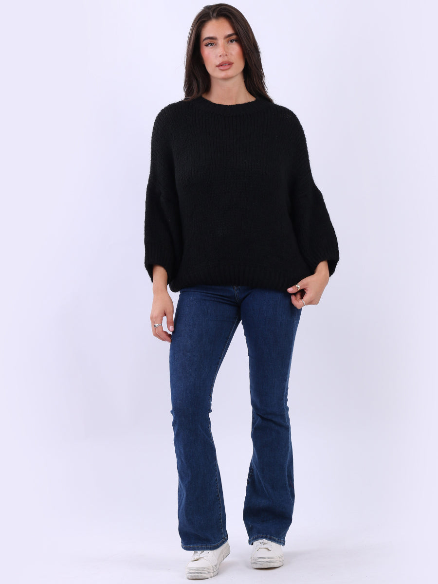 This stylish crop jumper is knitted with soft, plush wool that feels delicate on the skin. Cut to a loose baggy fit, it features elegant balloon sleeves that keep women wearers cosy on chilly winter days. Pair it with your bottoms for a slaying look at any casual or formal event.