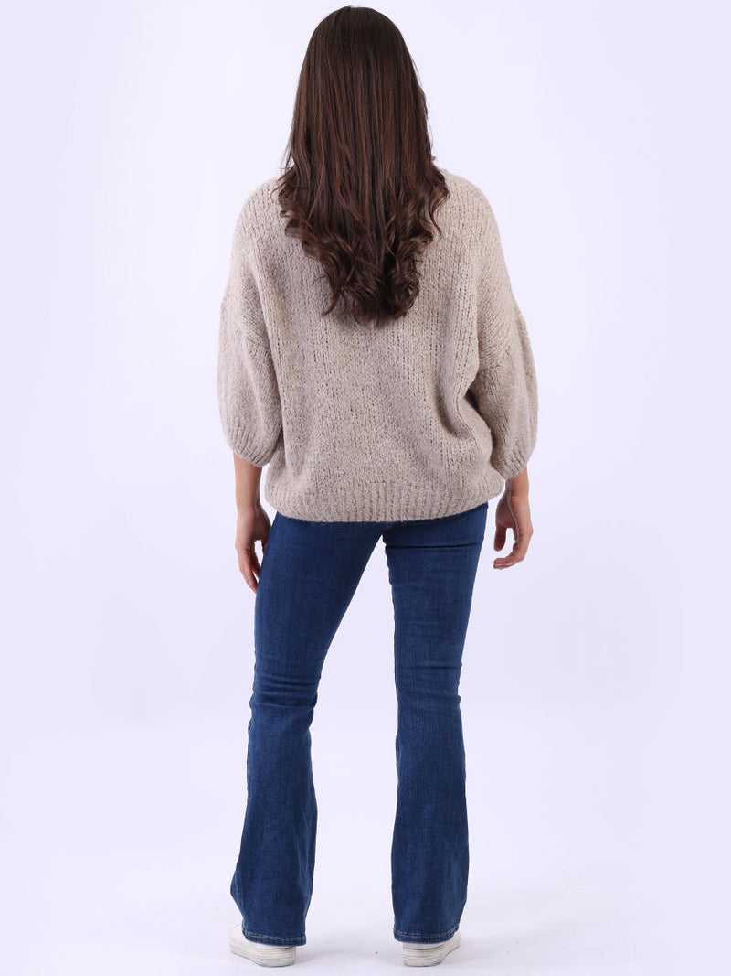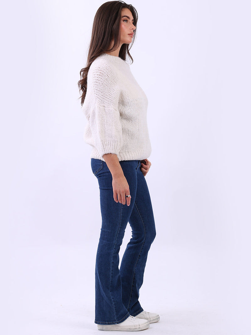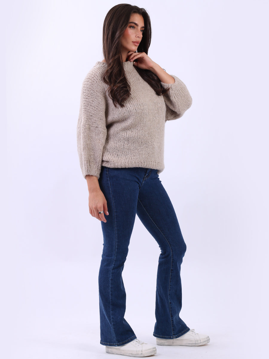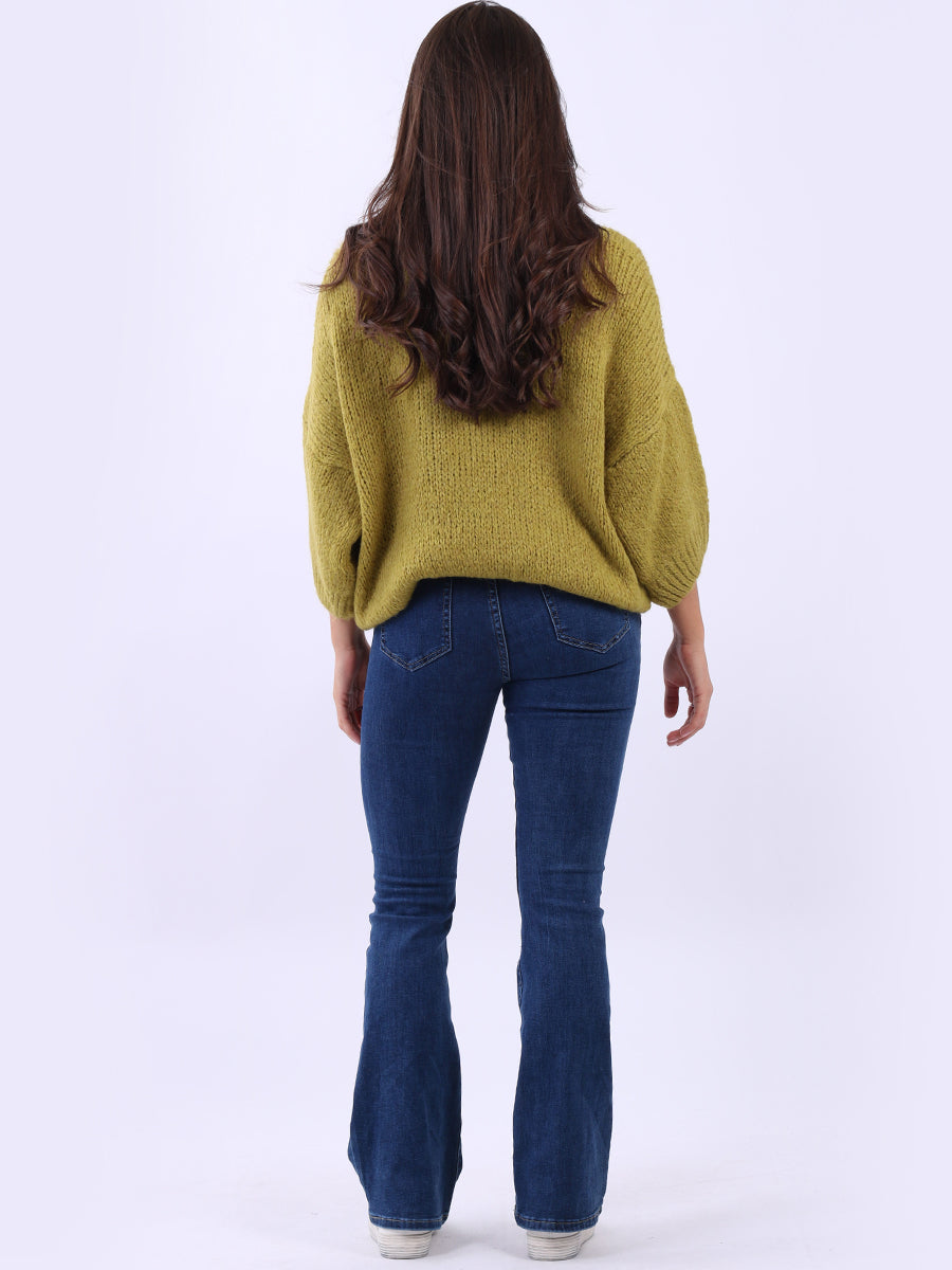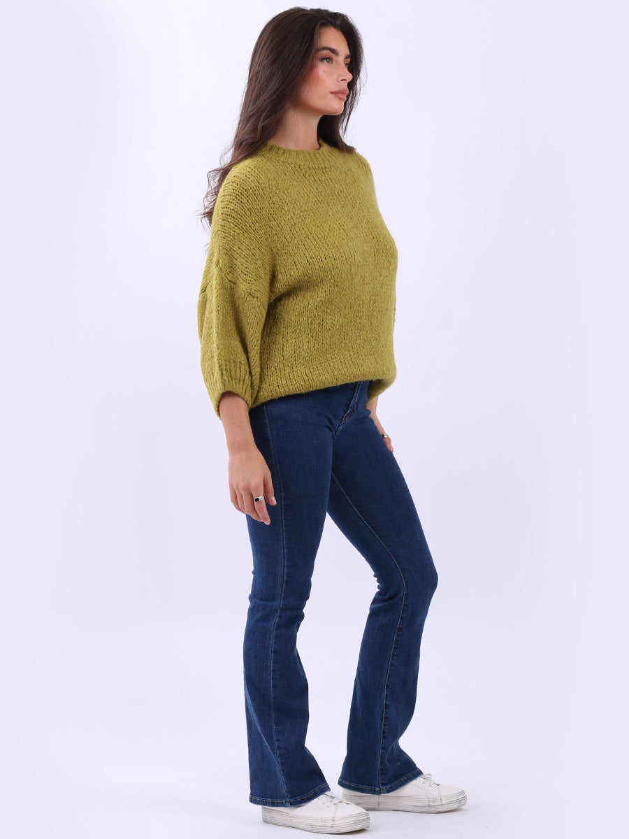 This stylish crop jumper is knitted with soft, plush wool that feels delicate on the skin. Cut to a loose baggy fit, it features elegant balloon sleeves that keep women wearers cosy on chilly winter days. Pair it with your bottoms for a slaying look at any casual or formal event.