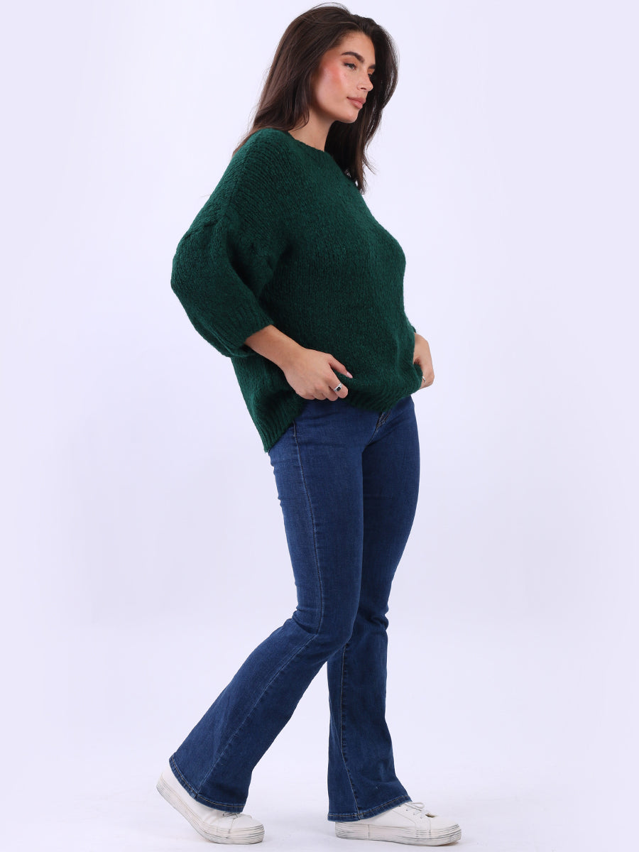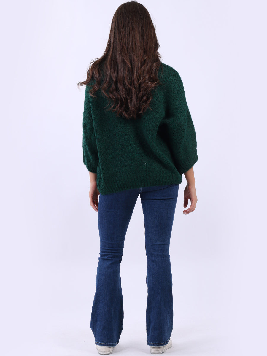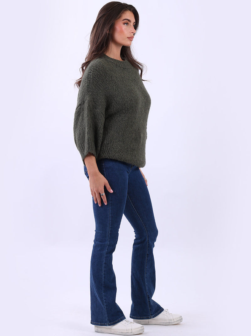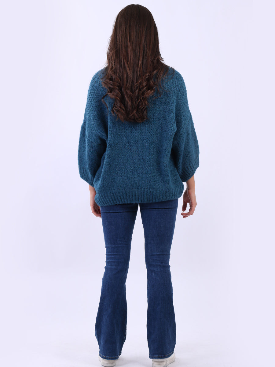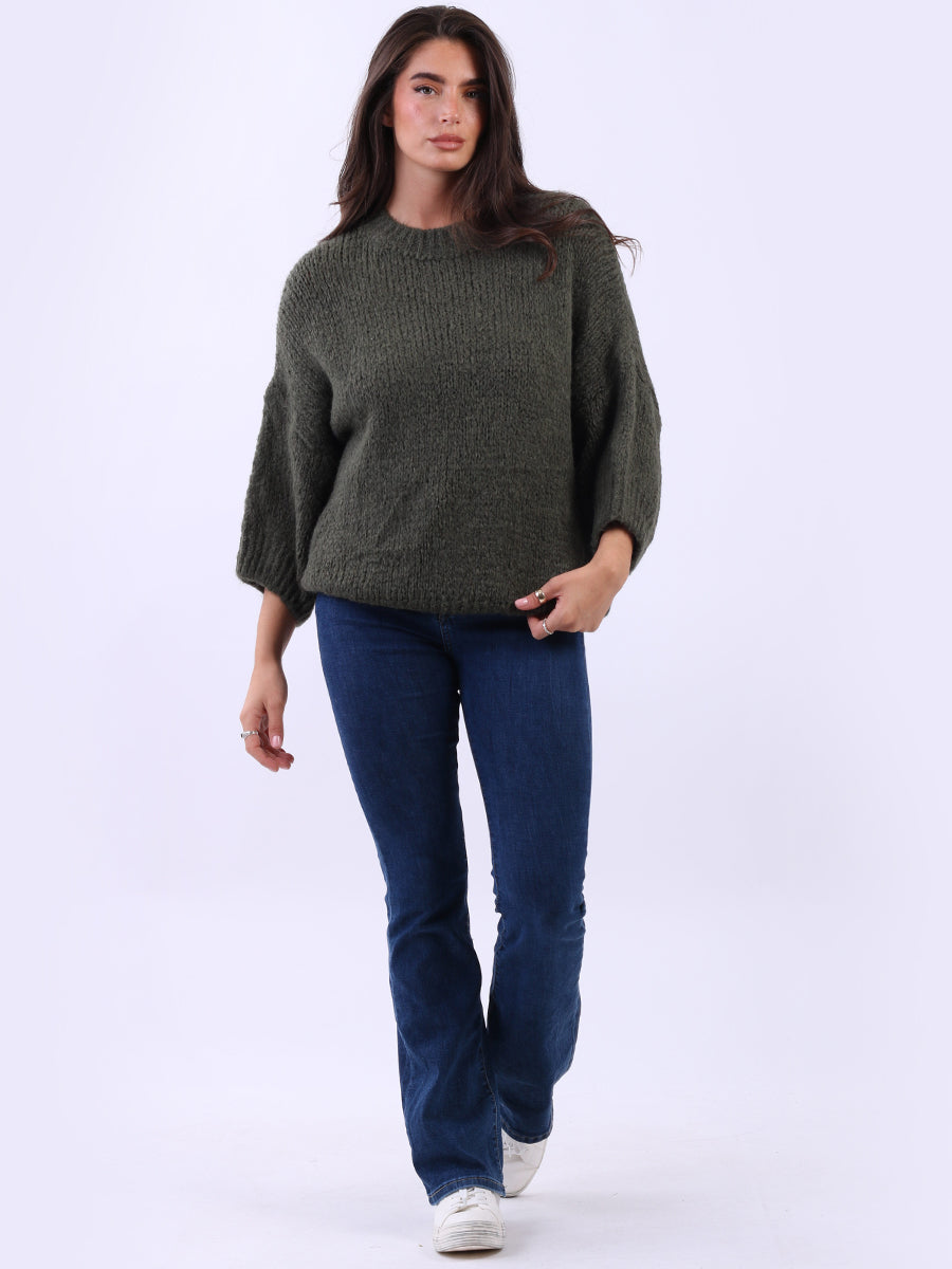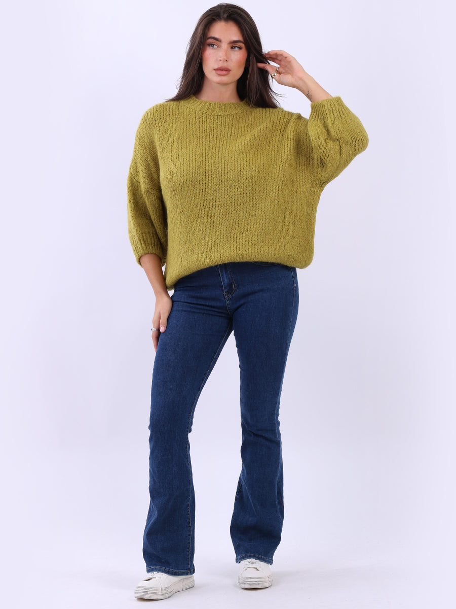 This stylish crop jumper is knitted with soft, plush wool that feels delicate on the skin. Cut to a loose baggy fit, it features elegant balloon sleeves that keep women wearers cosy on chilly winter days. Pair it with your bottoms for a slaying look at any casual or formal event.