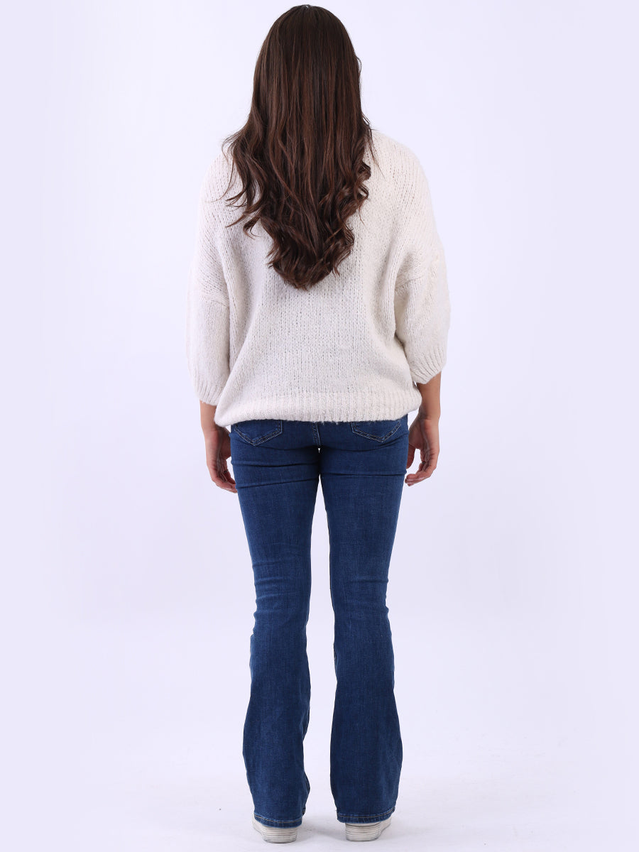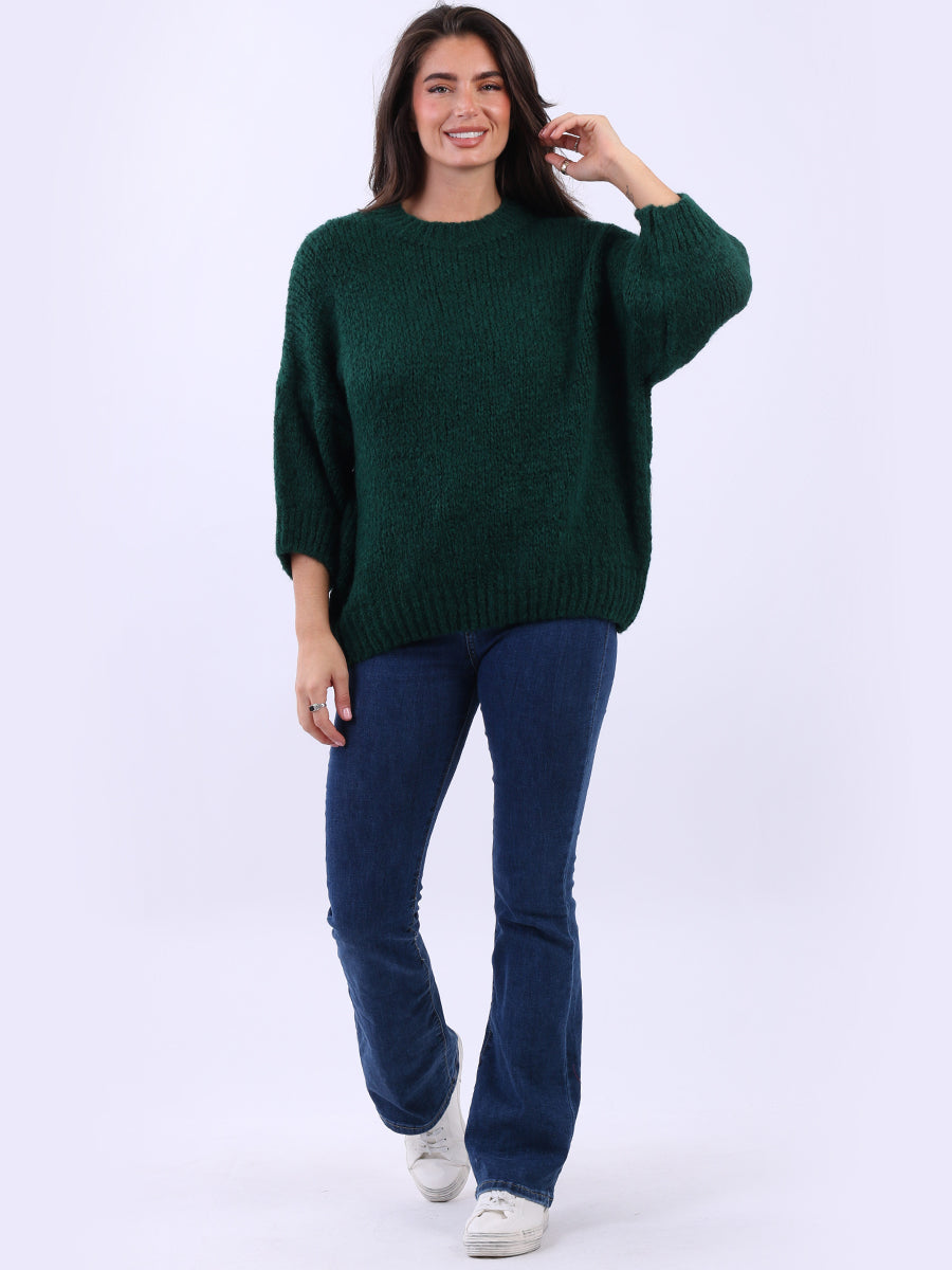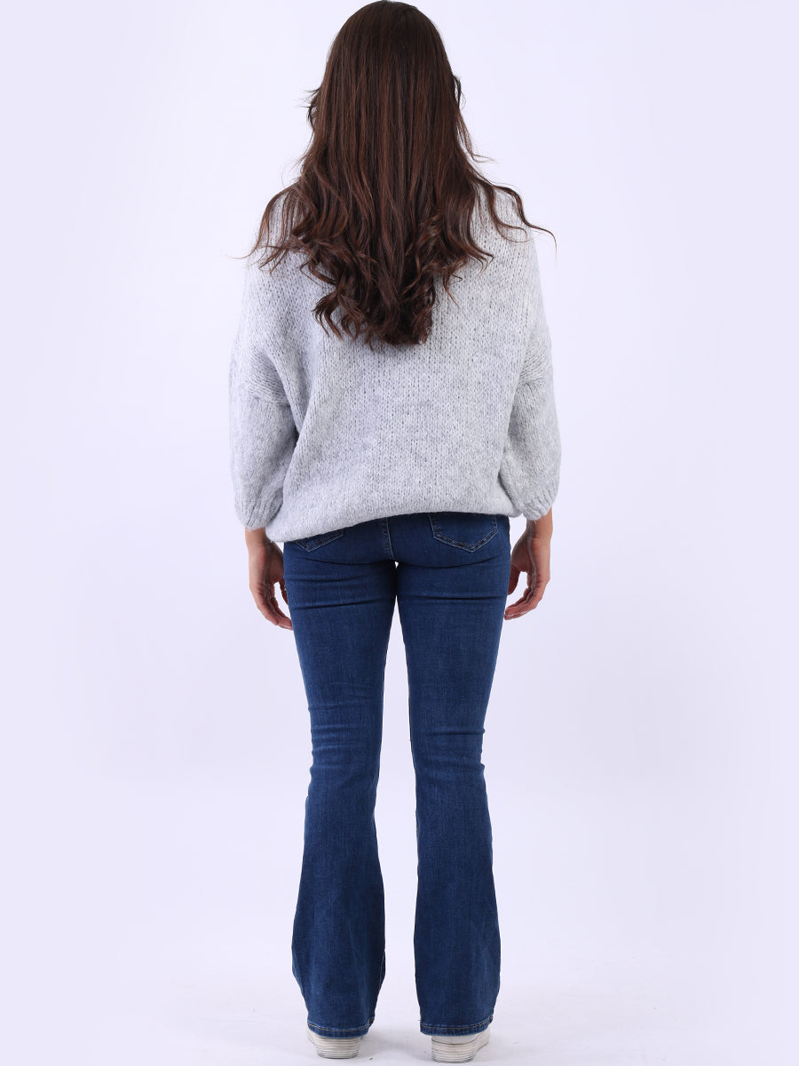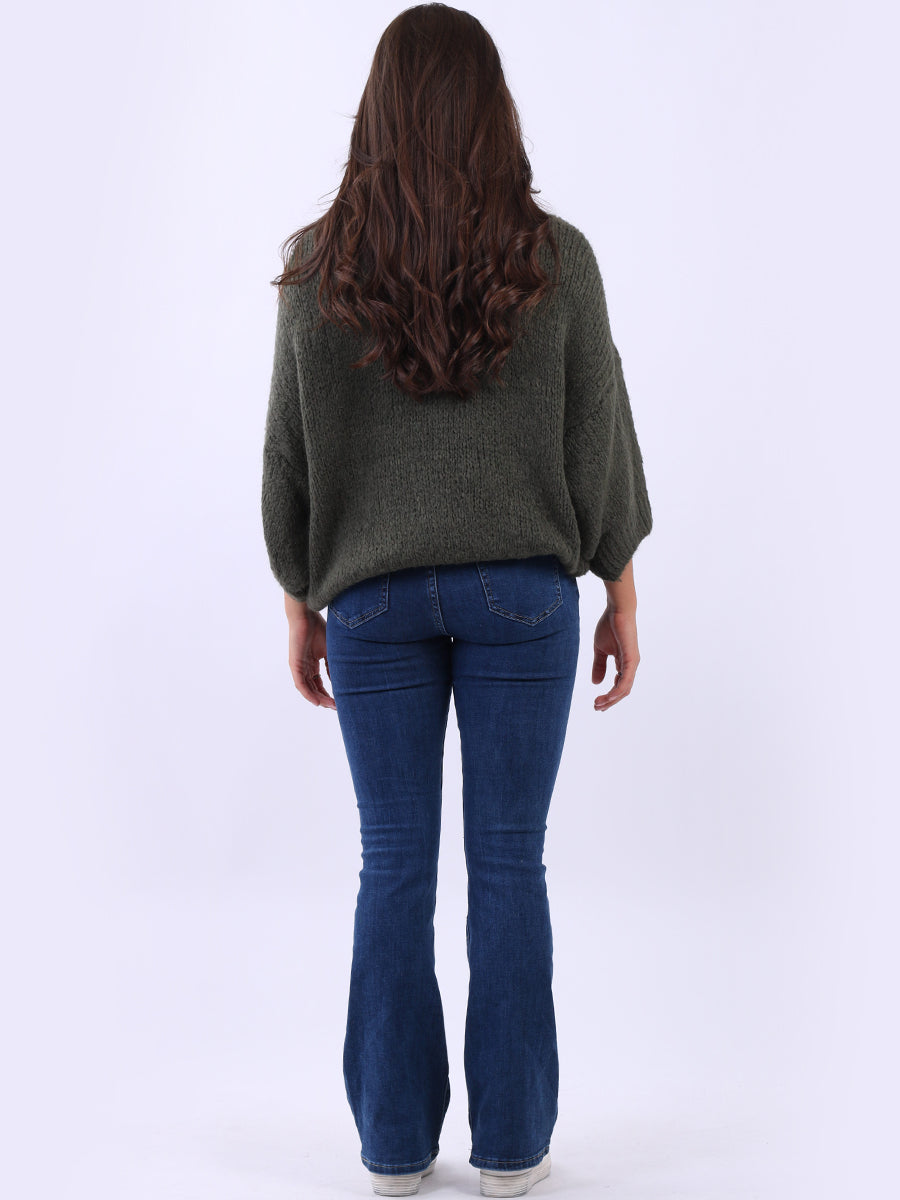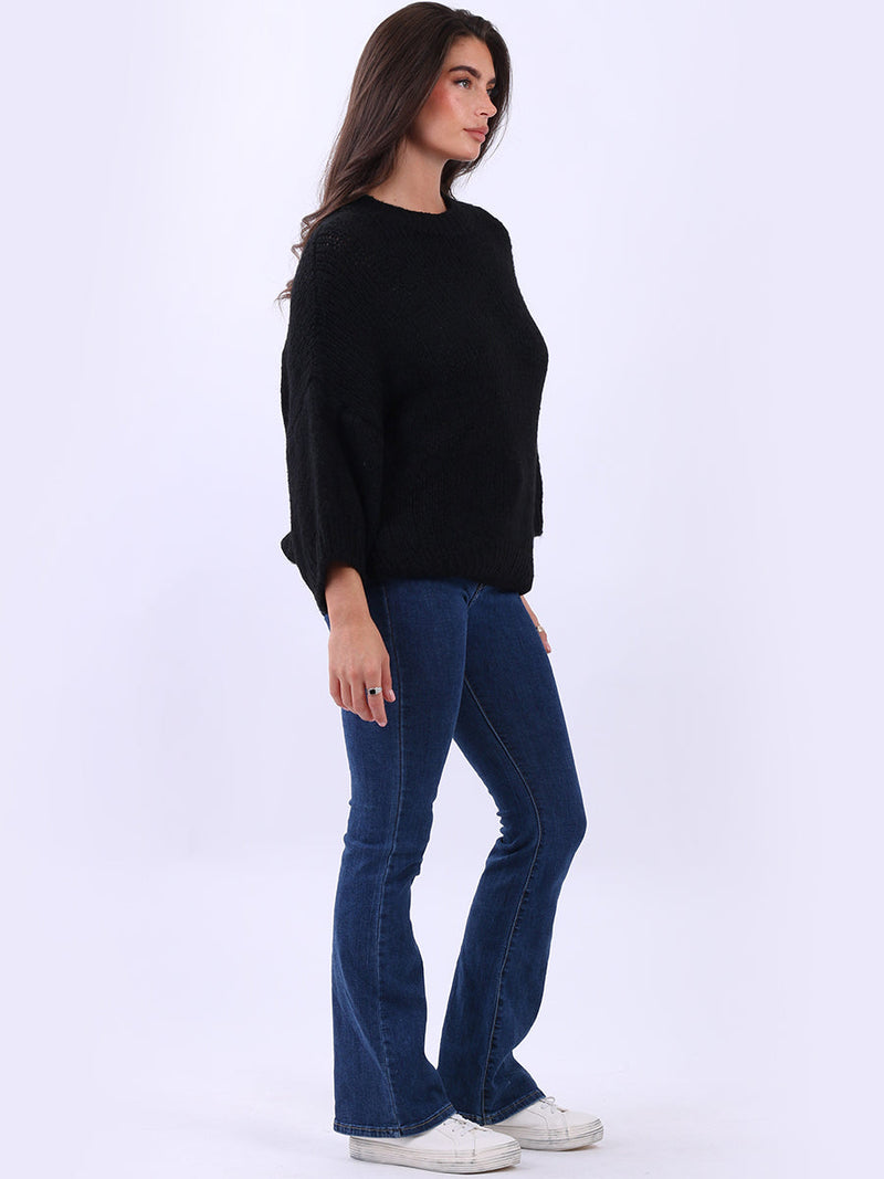 This stylish crop jumper is knitted with soft, plush wool that feels delicate on the skin. Cut to a loose baggy fit, it features elegant balloon sleeves that keep women wearers cosy on chilly winter days. Pair it with your bottoms for a slaying look at any casual or formal event.