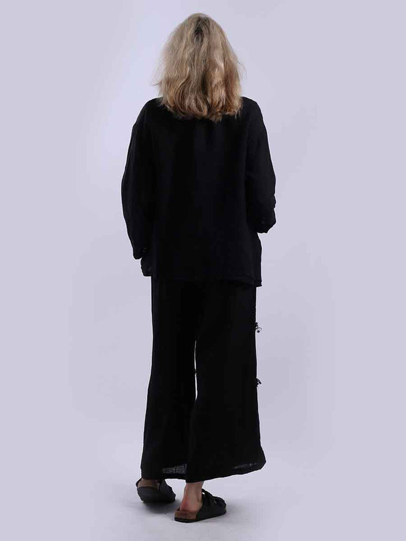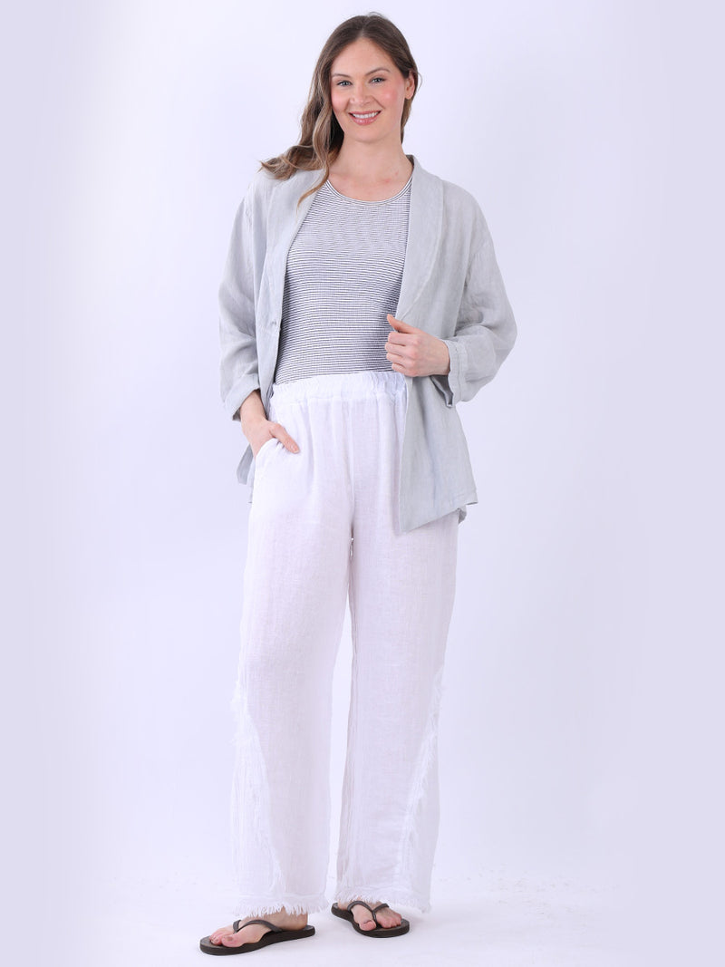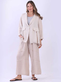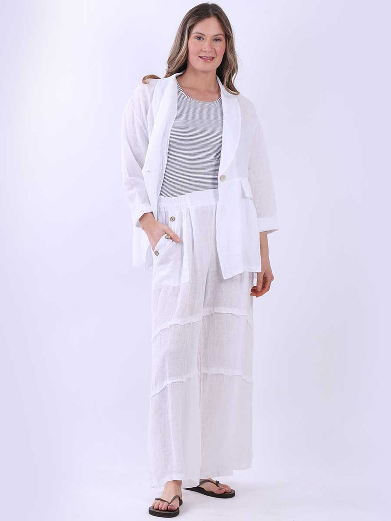 Imagine walking on a nice summer morning in this woman’s solid linen jacket. It has a soft feel like a warm hug, and the collared neck gives it a nice touch of style. You can wear the front button detail open for a laid-back vibe or closed up for some added warmth. Throw it on over your favorite outfits, and it’ll feel like the perfect final touch for a lovely spring day.
