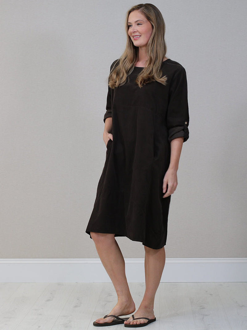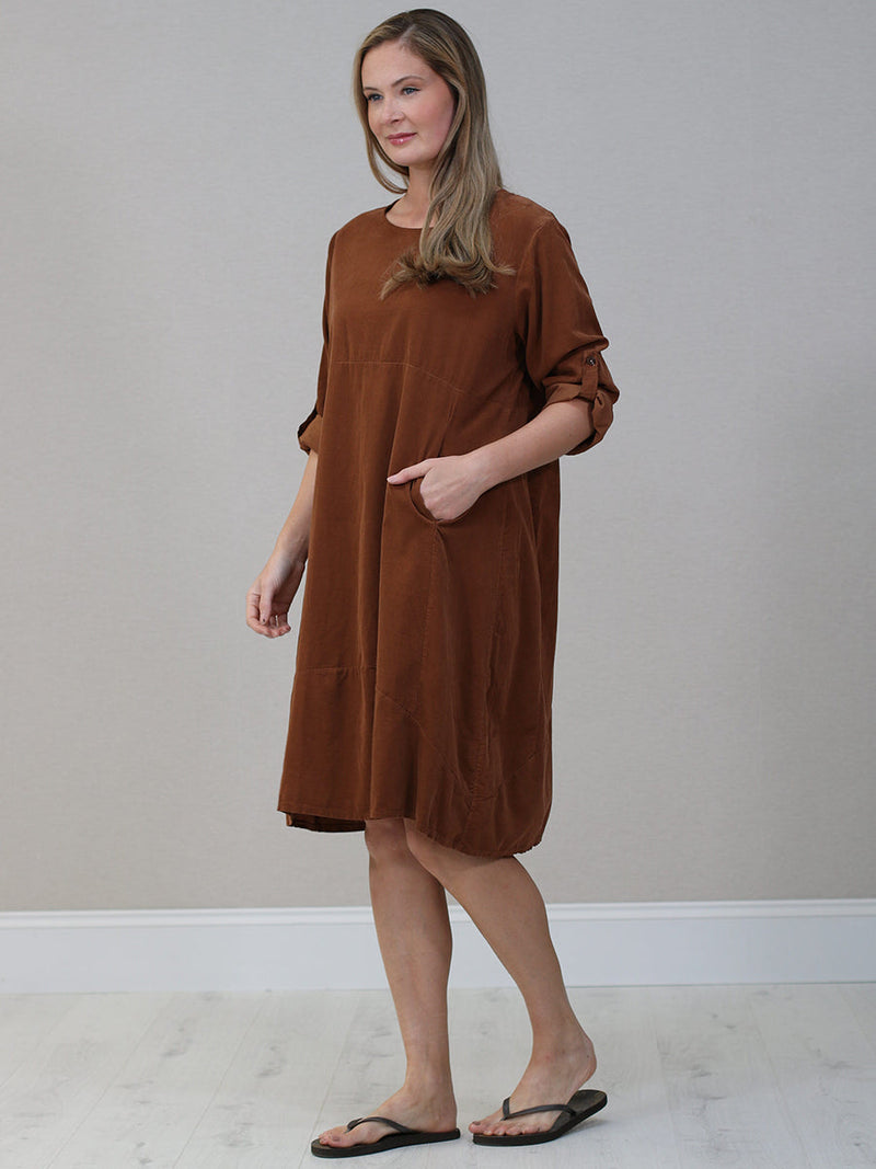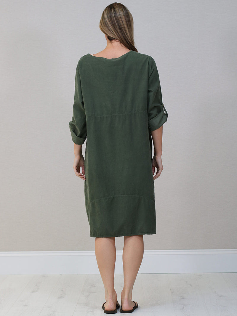 This corduroy dress from Online Shopping Store is the kind of dress you'll wear on repeat. Soft cotton corduroy feels comfortable, and the relaxed fit flatters without fuss. Button sleeve details and practical side pockets add function, while the knee-length cut keeps it versatile. Wear it with trainers for casual days or boots when it gets colder - it's easy styling that actually looks good.