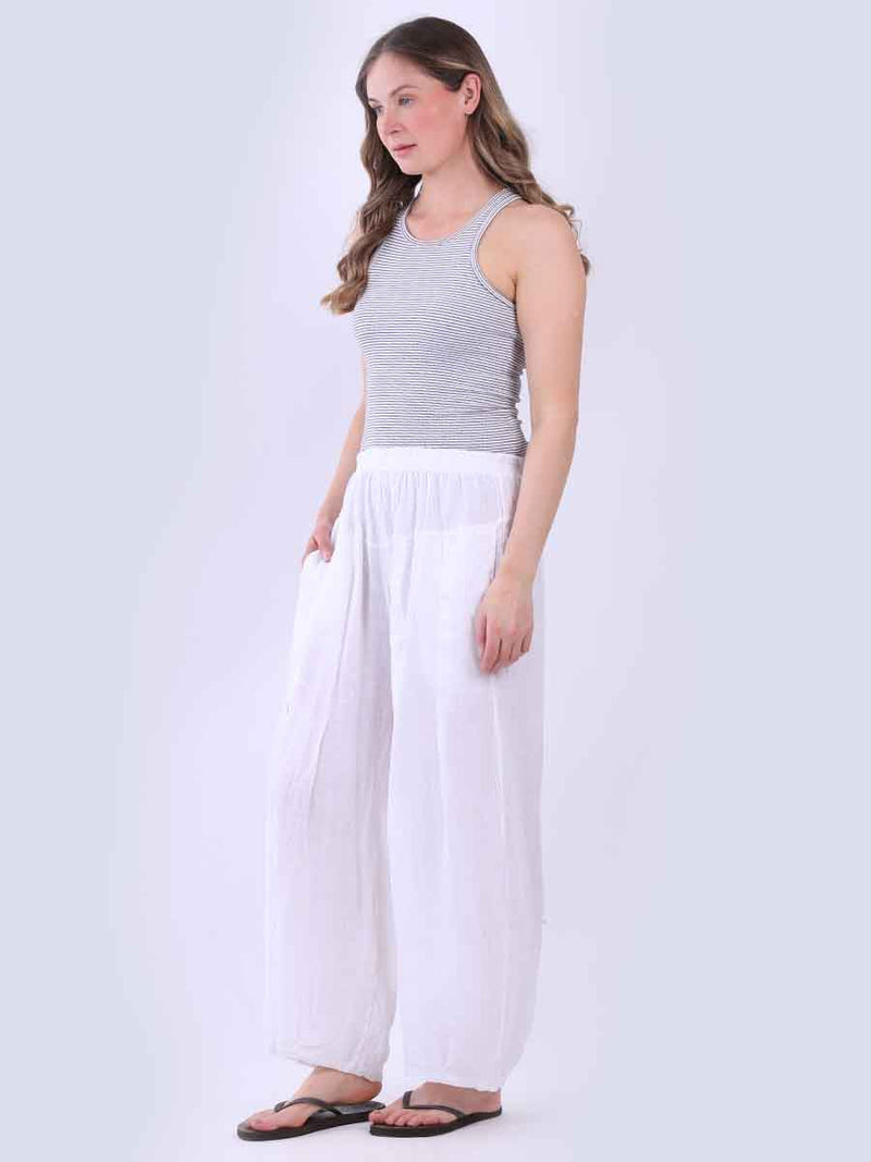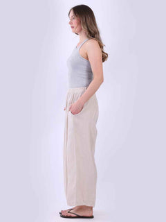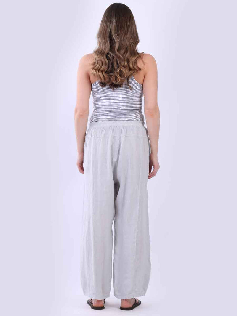 These wide-leg trousers in a solid colour move like a calm river. These are crafted from soft Italian linen, offering a lovely flow and comfort for those warm summer days. Try pairing it with a tucked-in top and some flat sandals for a relaxed vibe.