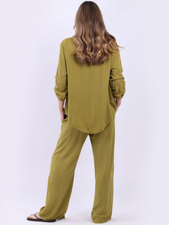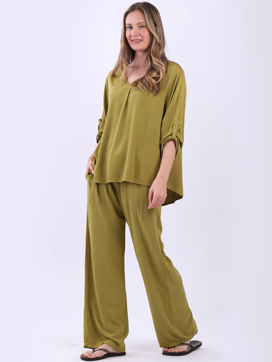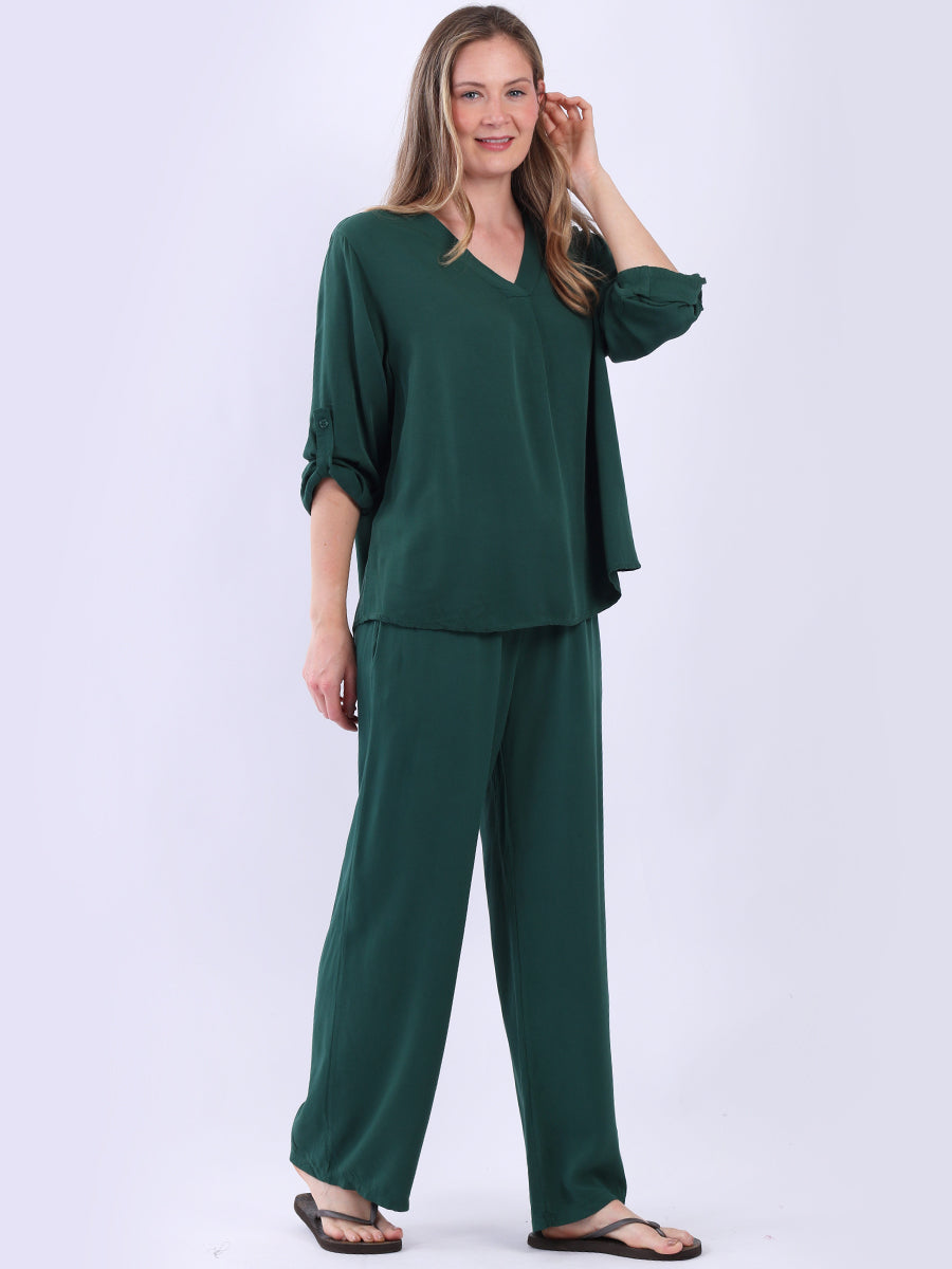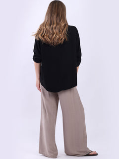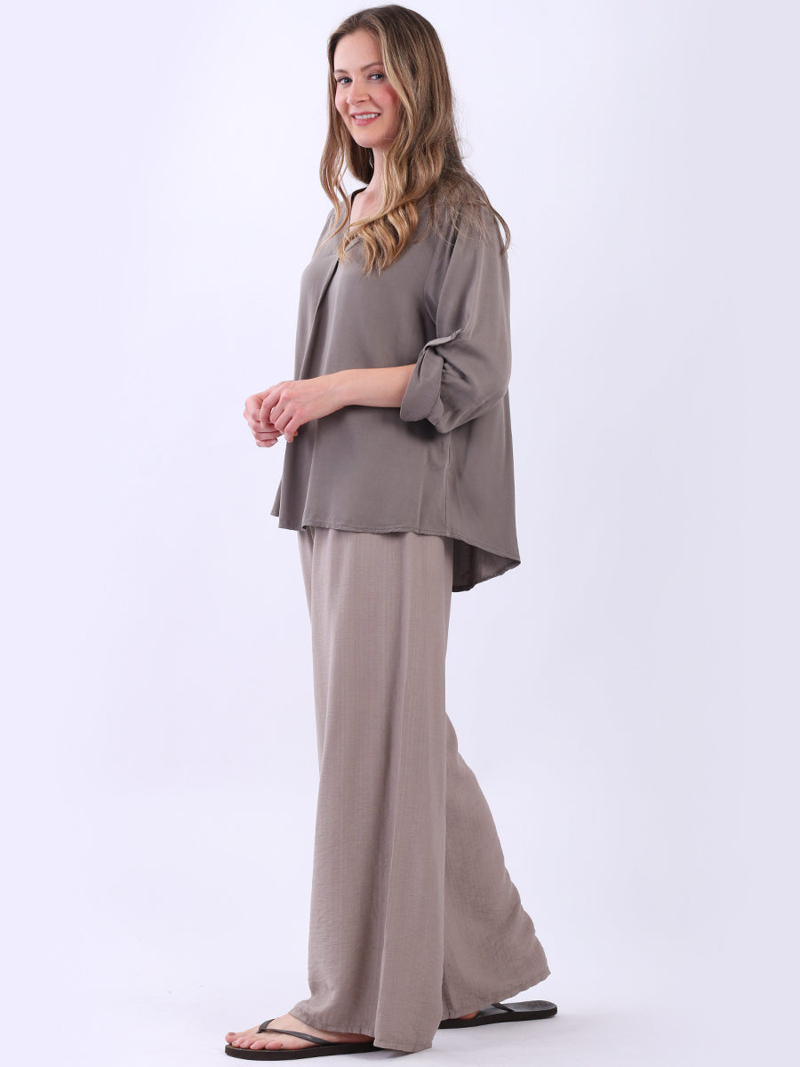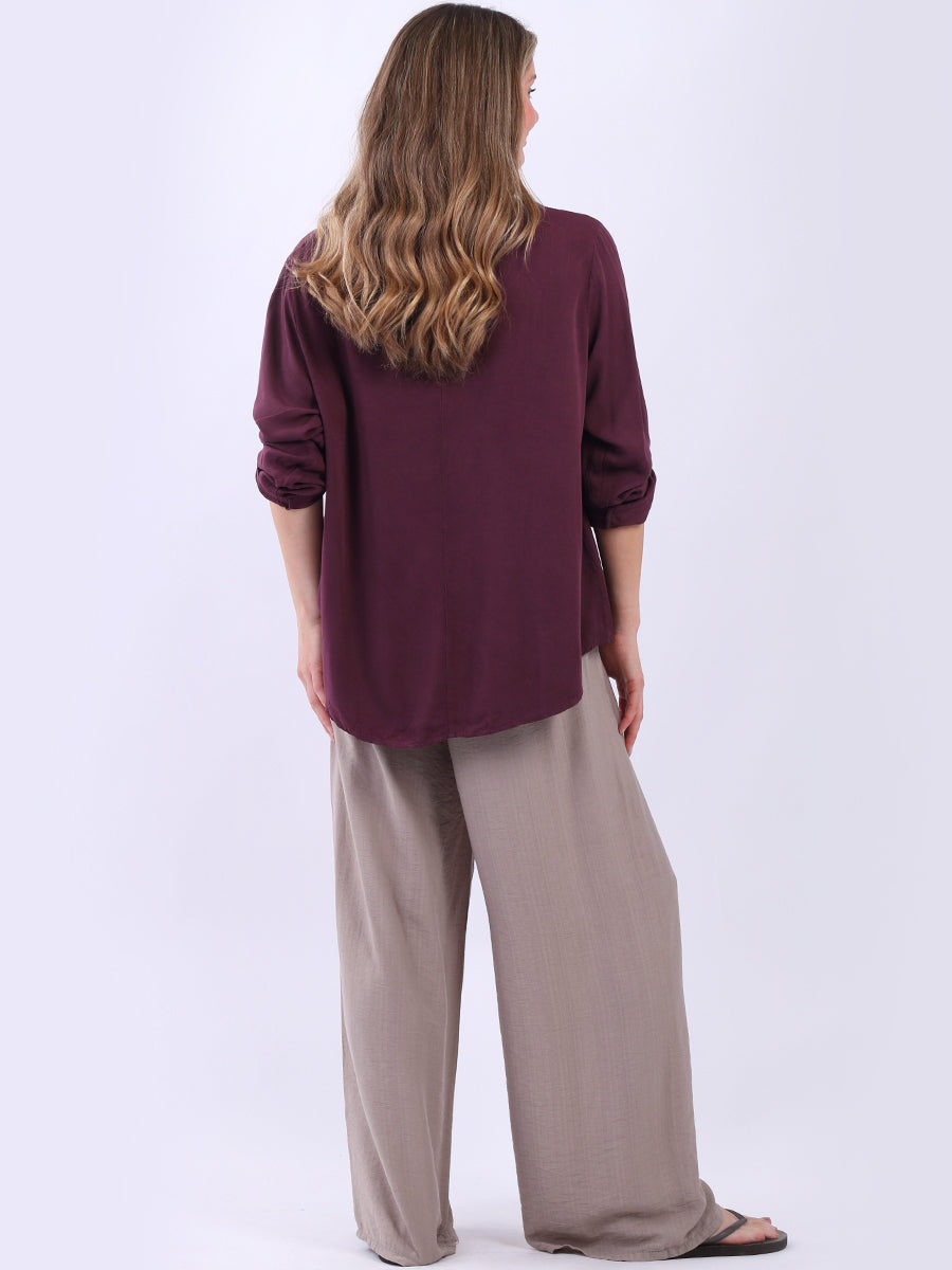 Fashion boutique presents this timelessly elegant baggy crop top that is plain in color and casual in design. Crafted with precision in Italy, this top has all the soft, laid-back features like v neckline, long tabbed sleeves and a loose fit, that a modern woman desire. Pair this stunning top with wide-leg trousers to achieve the classic aesthetics.
