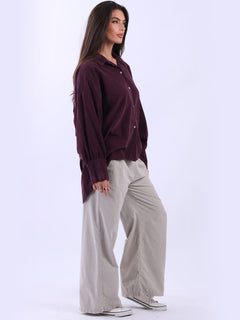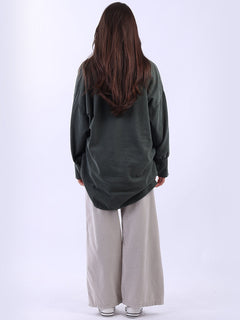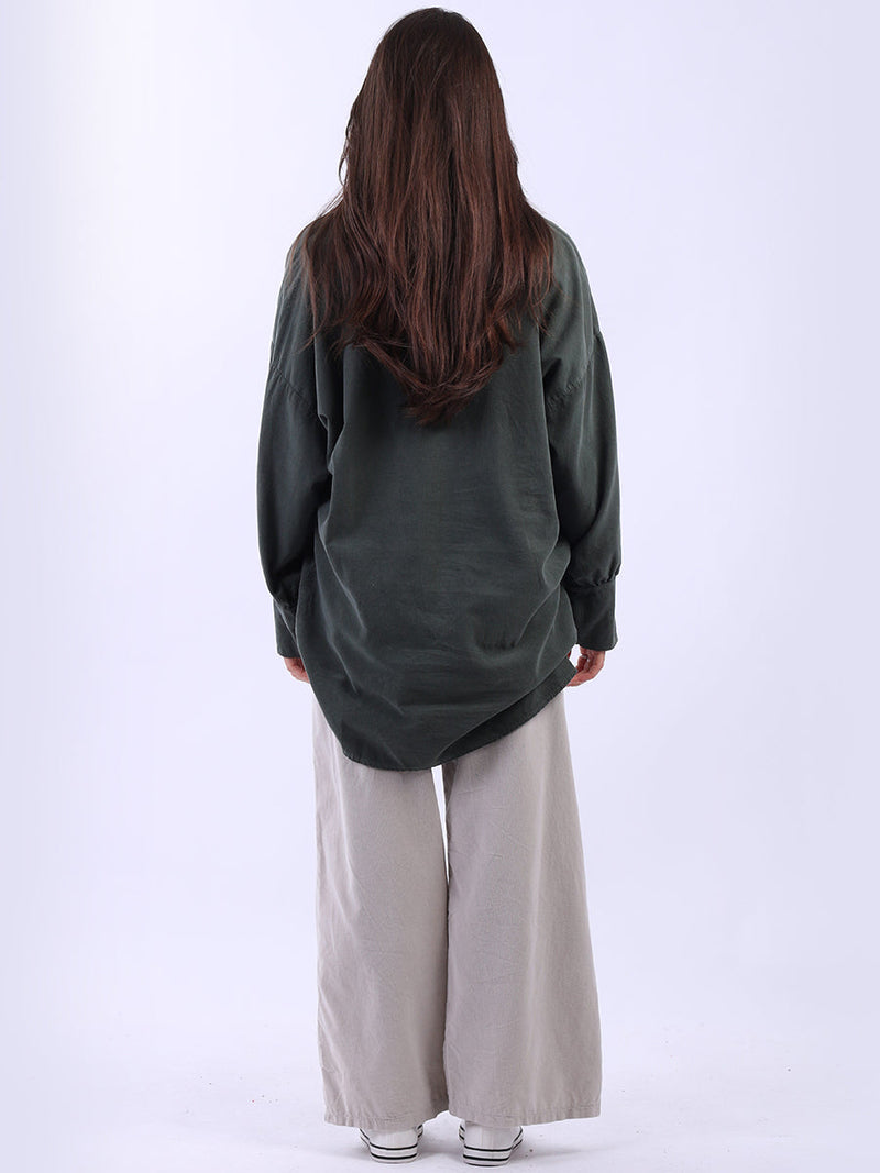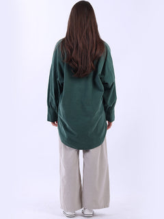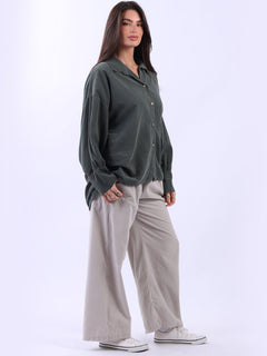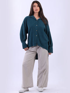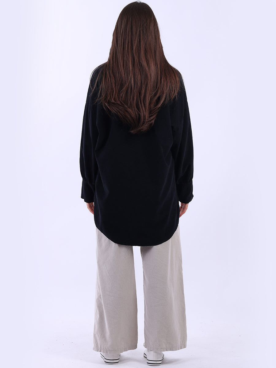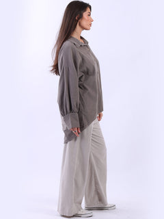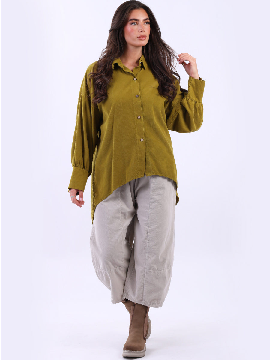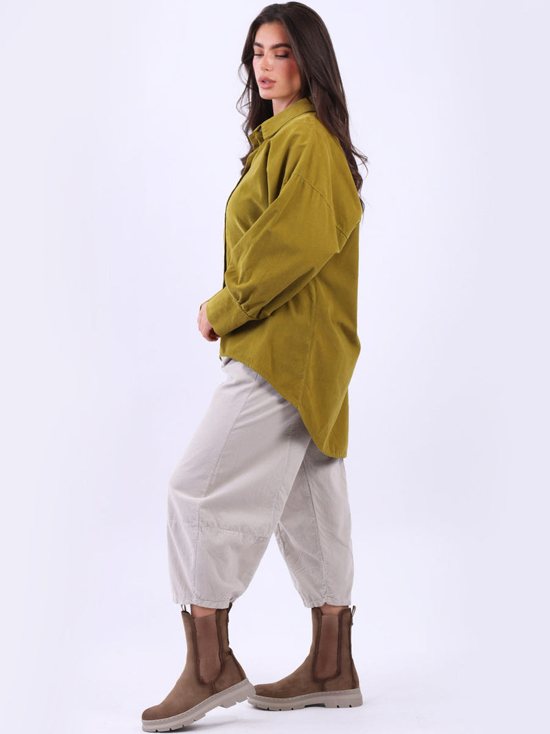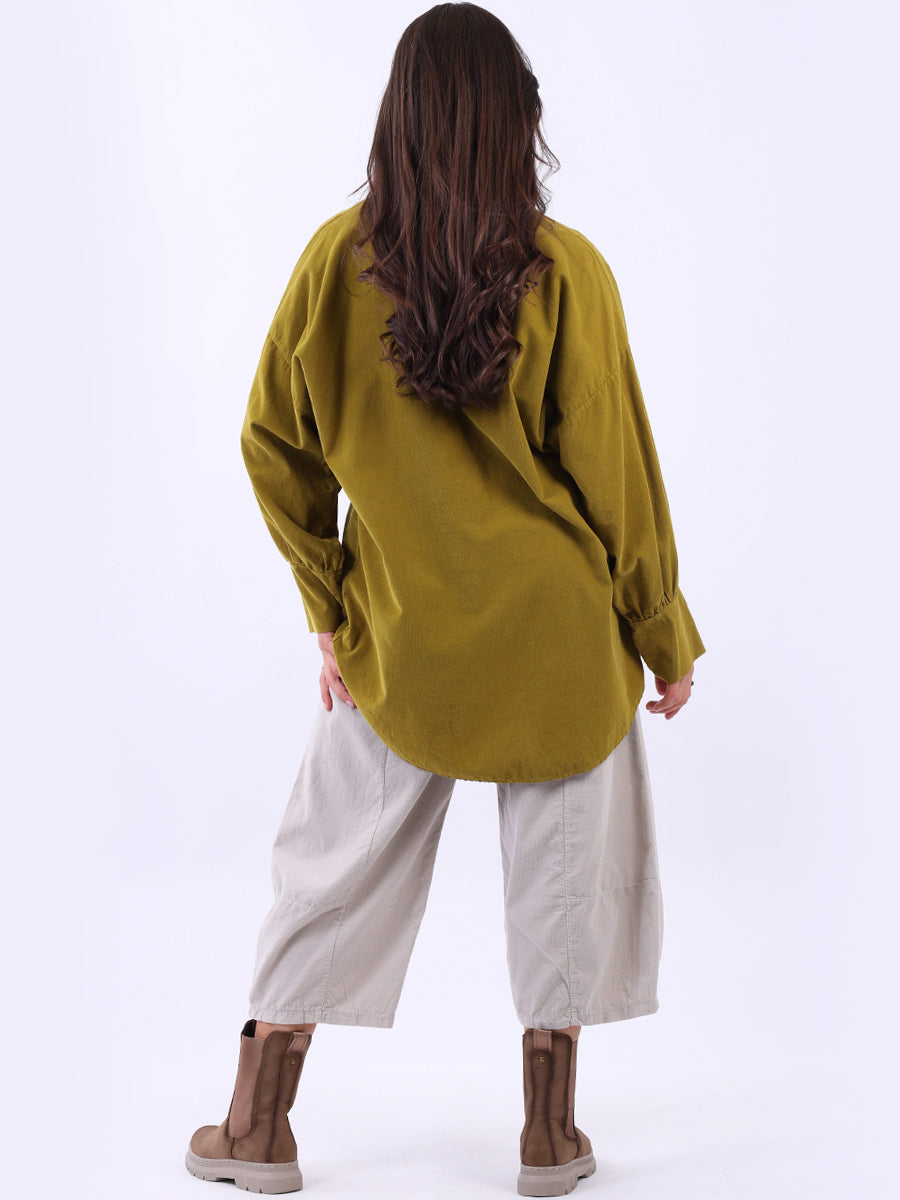 Women Solid Cotton Corduroy Collared Shirt