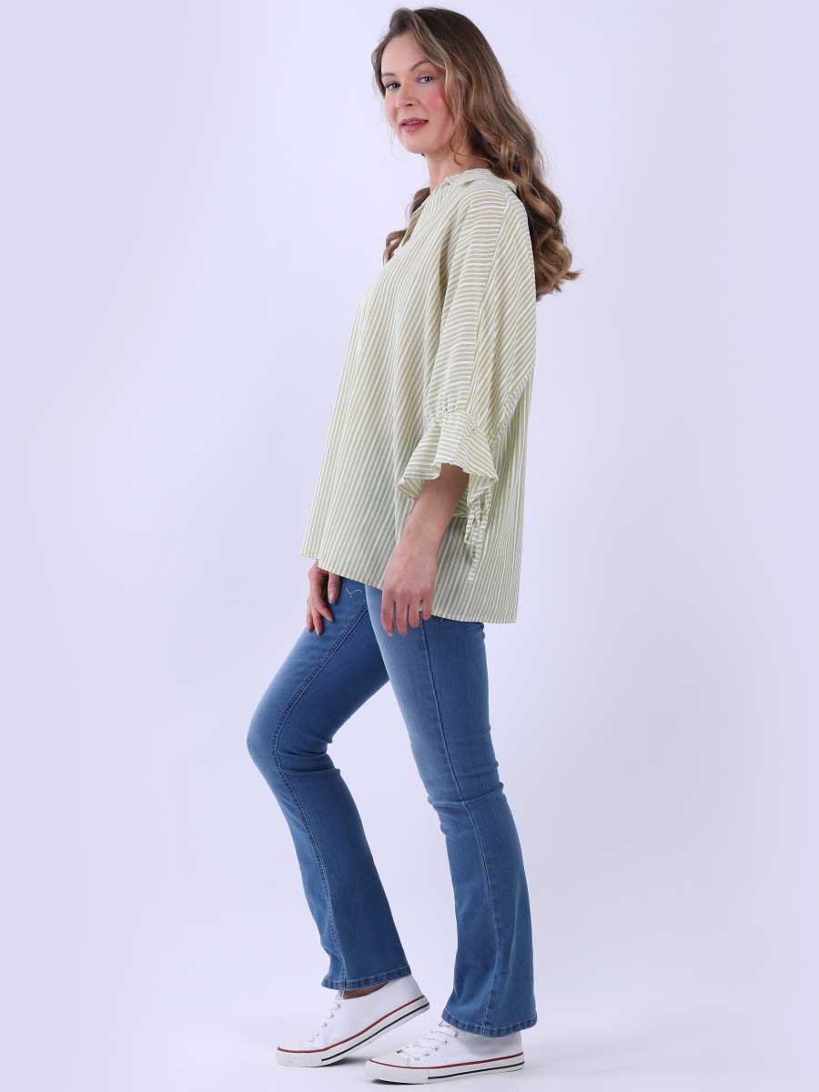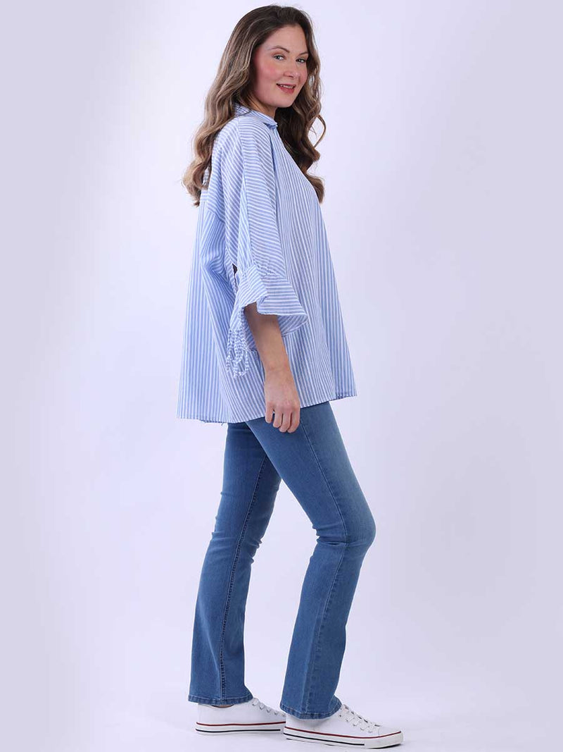 This striped cotton shirt from Online Boutique Australia has that easy charm that just feels right. Perfect for those warm summer days, it feels soft against your skin, lets your body breathe, and falls just right. The collared neck gives it a classy charm, and the bell sleeves add a fun, feminine vibe. This Italian piece is so easy to style! You can wear it with wide-leg trousers for a relaxed vibe or tuck it into tailored trousers for a more polished look. It just makes getting dressed feel effortless.