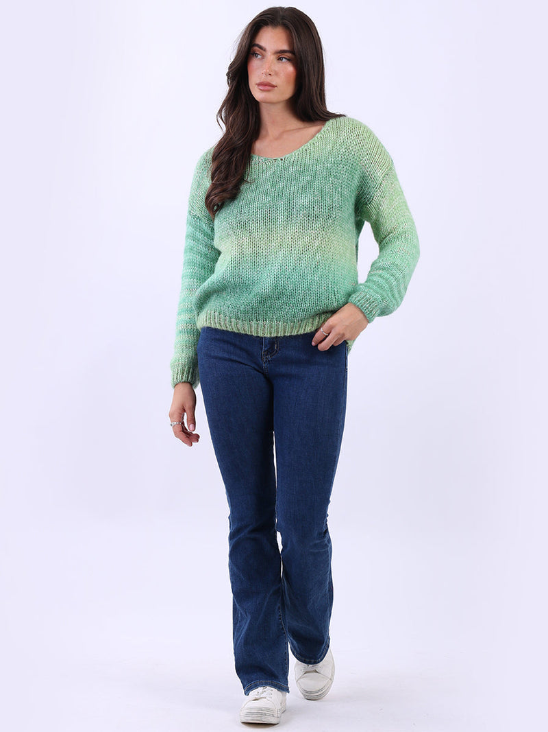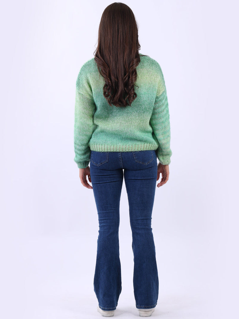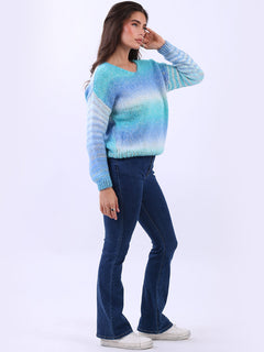 Women V-Neck Crop Knitted Rainbow Sweater