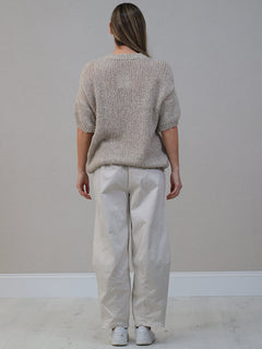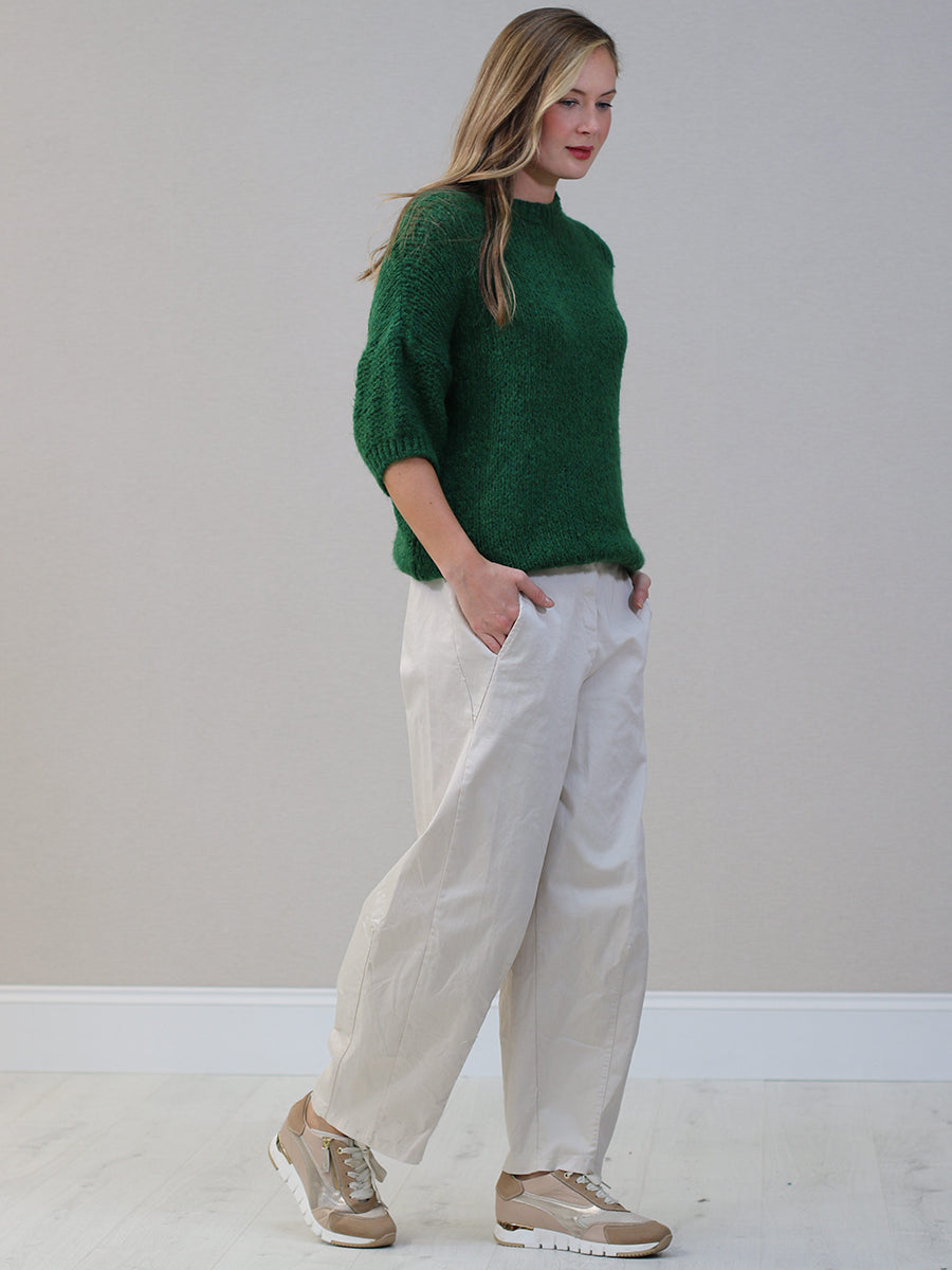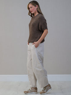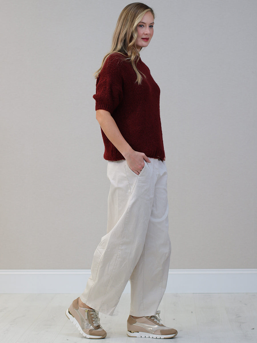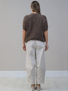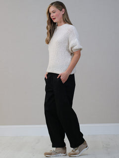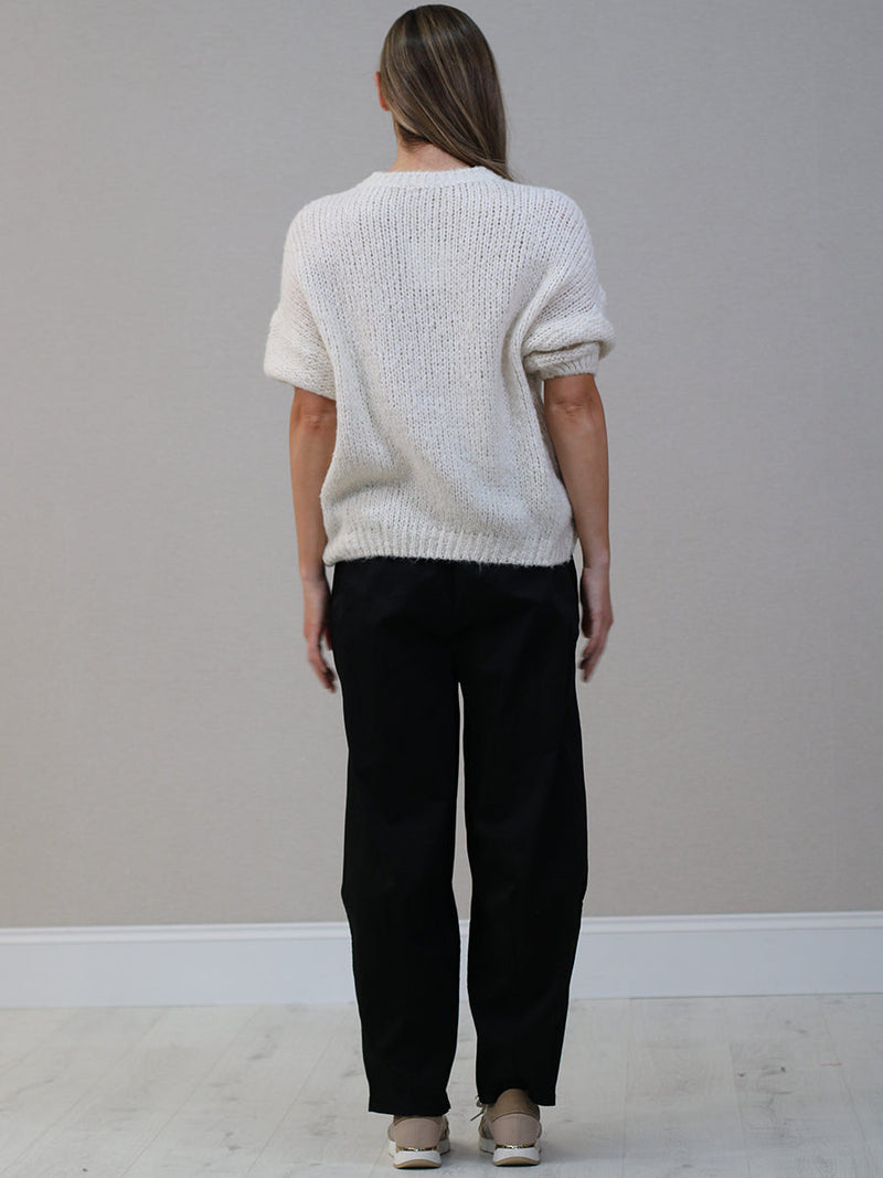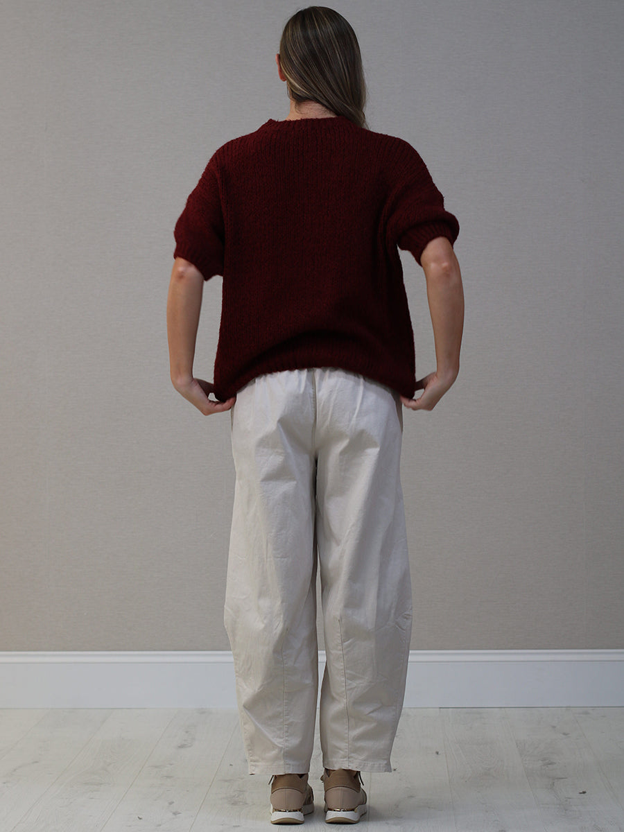 The Online Fashion Boutique collection introduces this crop boxy knitted jumper, a must-have for winter layering. Crafted from premium fabric, it features a classic crew neckline, roomy baggy sleeves, and a fashionable gathered hem that enhances its cropped silhouette. Offered in a sleek solid tone, this Italian-made jumper adapts effortlessly from casual daytime looks to chic evening wear.