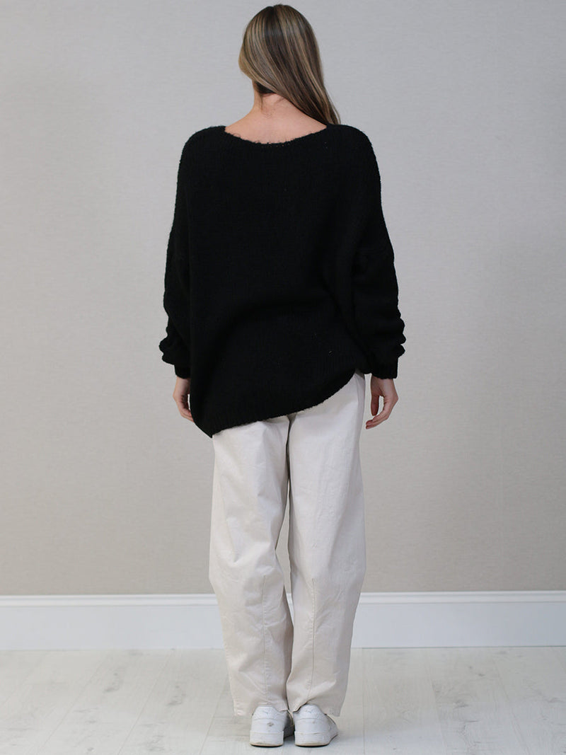 Online Fashion Boutique brings this stylish and cozy wool jumper. Made in Italy with soft, breathable wool, it features a relaxed drop-shoulder cut, ribbed sleeves and a flattering V-neckline. Pair with skirts, dresses or jeans–that layer beautifully beneath this ready-to-wear Italian wool jumper. Effortlessly chic, this plus-size wool jumper is bound to refresh your winter wardrobe.